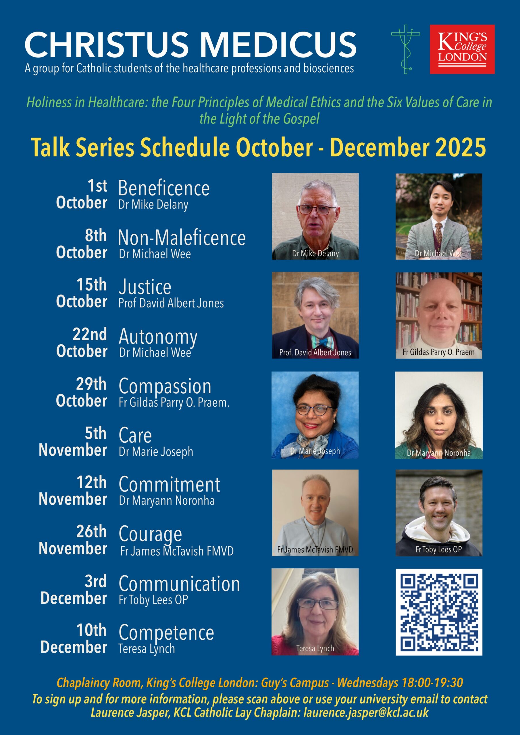 King's College Chaplaicy Room King's College London, Guy's Campus, LondonHoliness in Healthcare: the four principles of medical ethics and the six values of care in the light of the Gospel 22 October 2025 18:00 to 10 December 2025 19:30 Henriette Raphael Building, Guy’s Campus, London The Christus Medicus (Christ the Physician) group is for Catholic university students of the healthcare professions and biosciences. In … Continue reading Holiness in Healthcare: the four principles of medical ethics and the six values of care in the light of the Gospel (Christus Medicus Group)